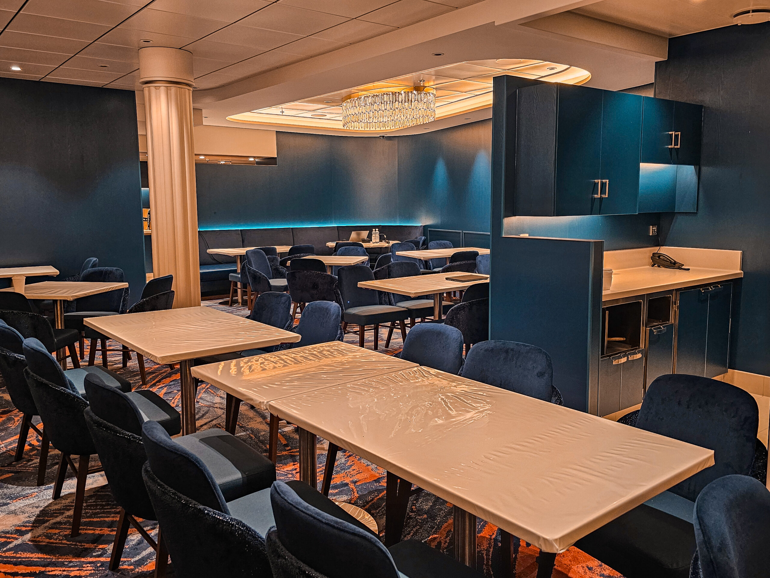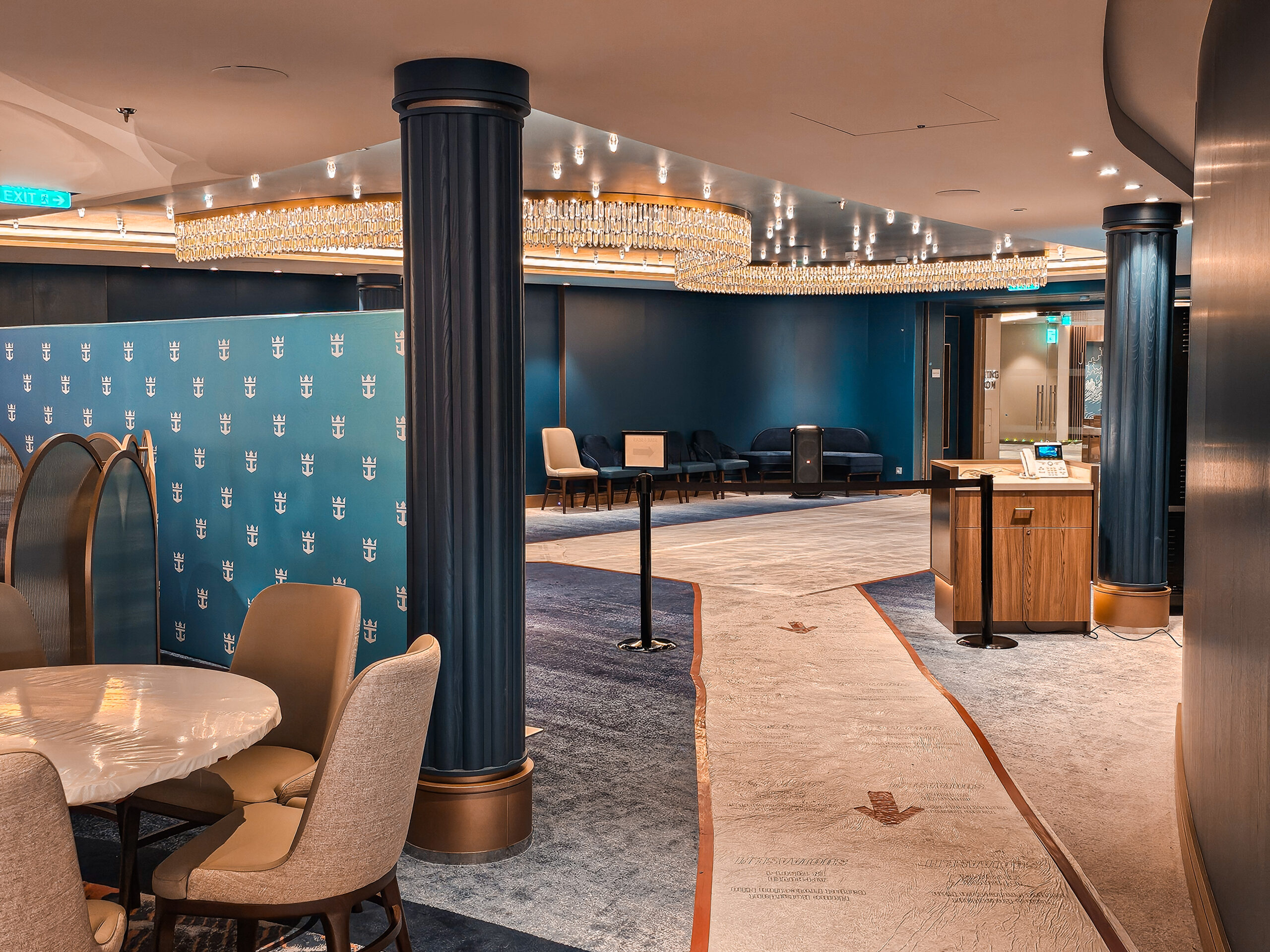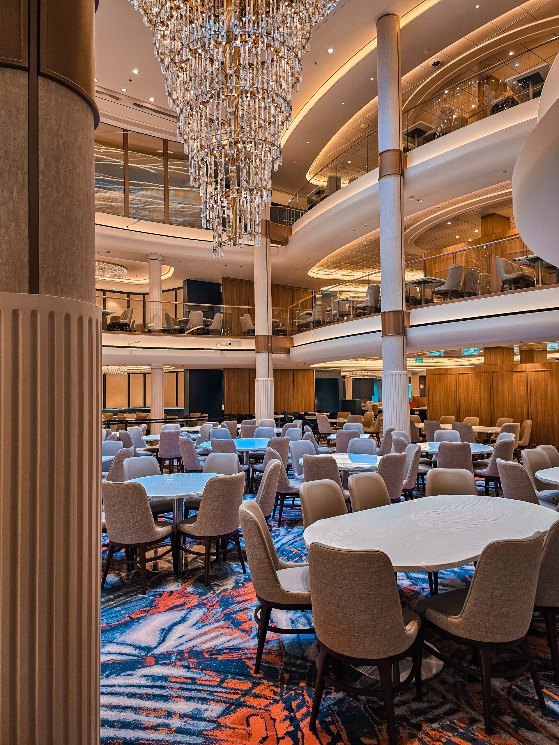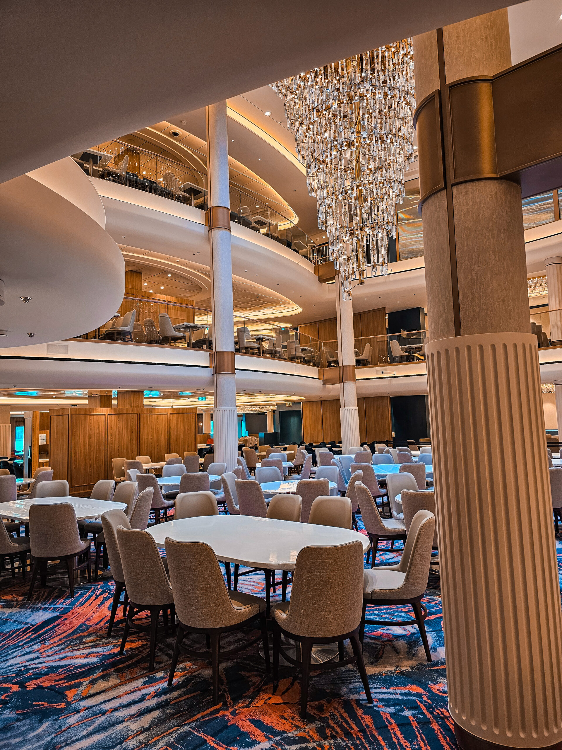 One of our main contributions on the Star of the Seas was the construction of Decks 3 and 4 in the Main Dining Area. This space is designed to be one of the ship’s central dining experiences, offering guests a large and welcoming environment with refined finishing. Thanks to our experience from the earlier vessel, the workflow was already well understood, and we were able to focus even more on craftsmanship, details, and delivering a result that feels polished and inviting. The Main Dining Area is a place we are genuinely proud to have helped bring to life.