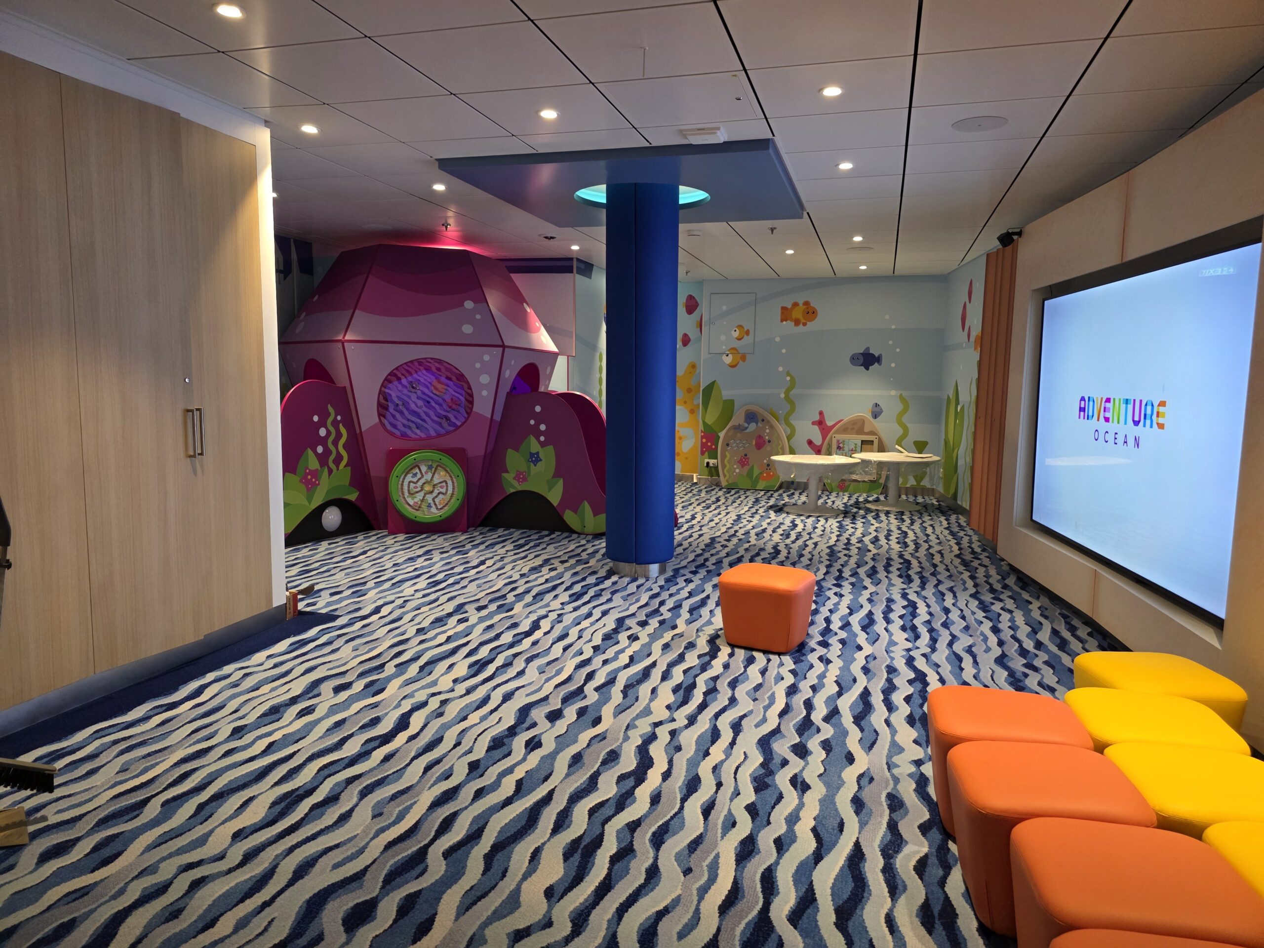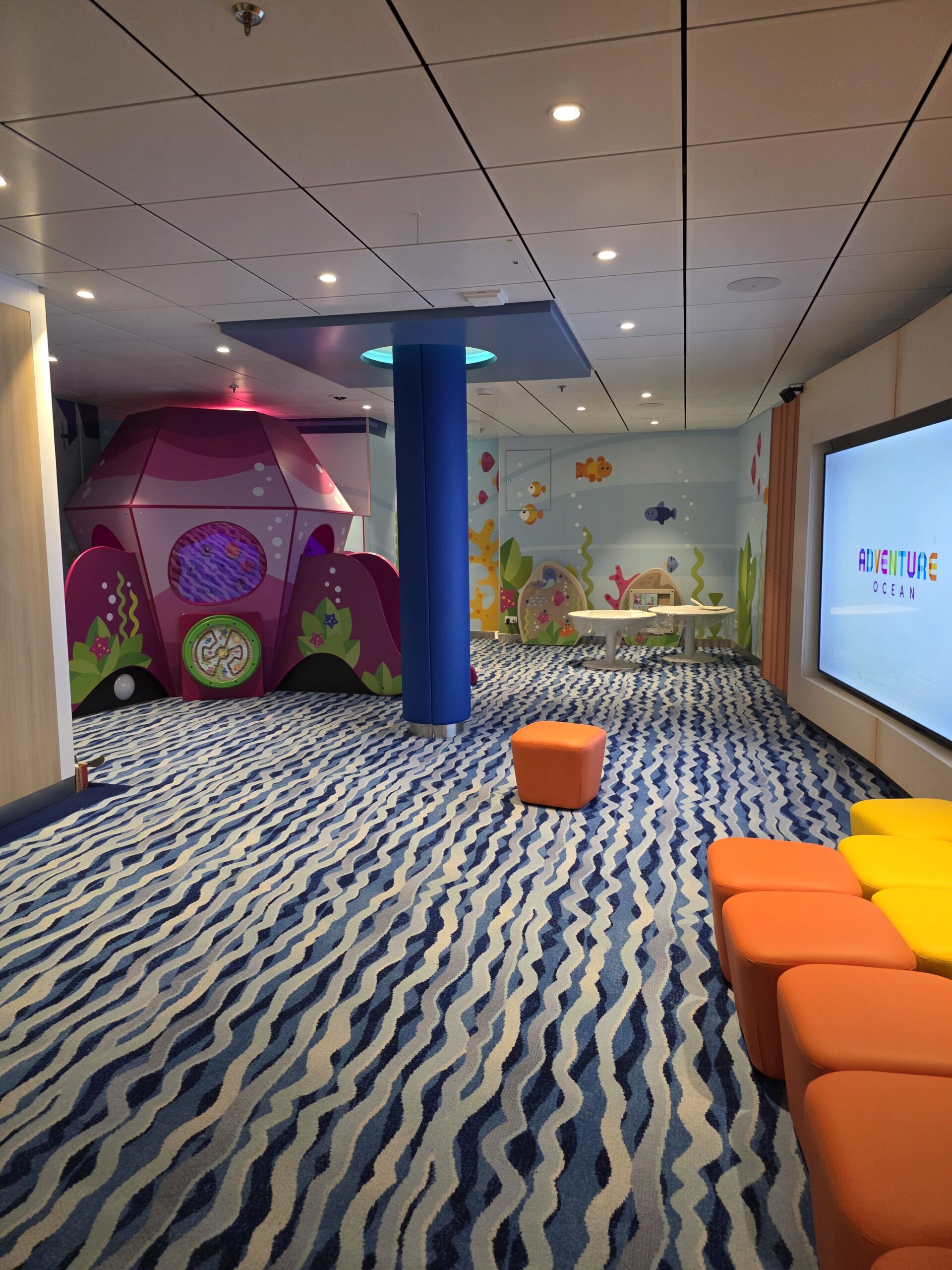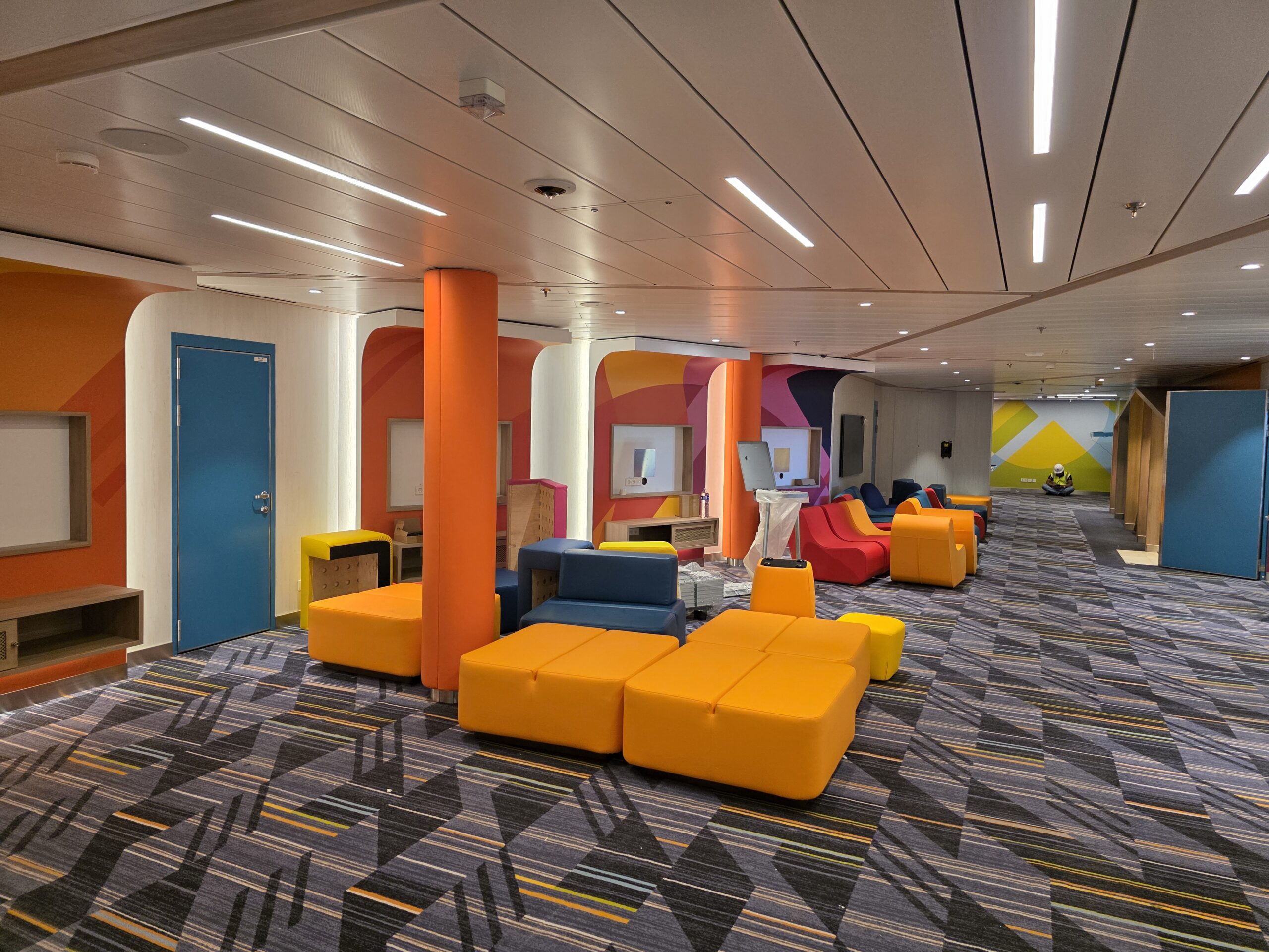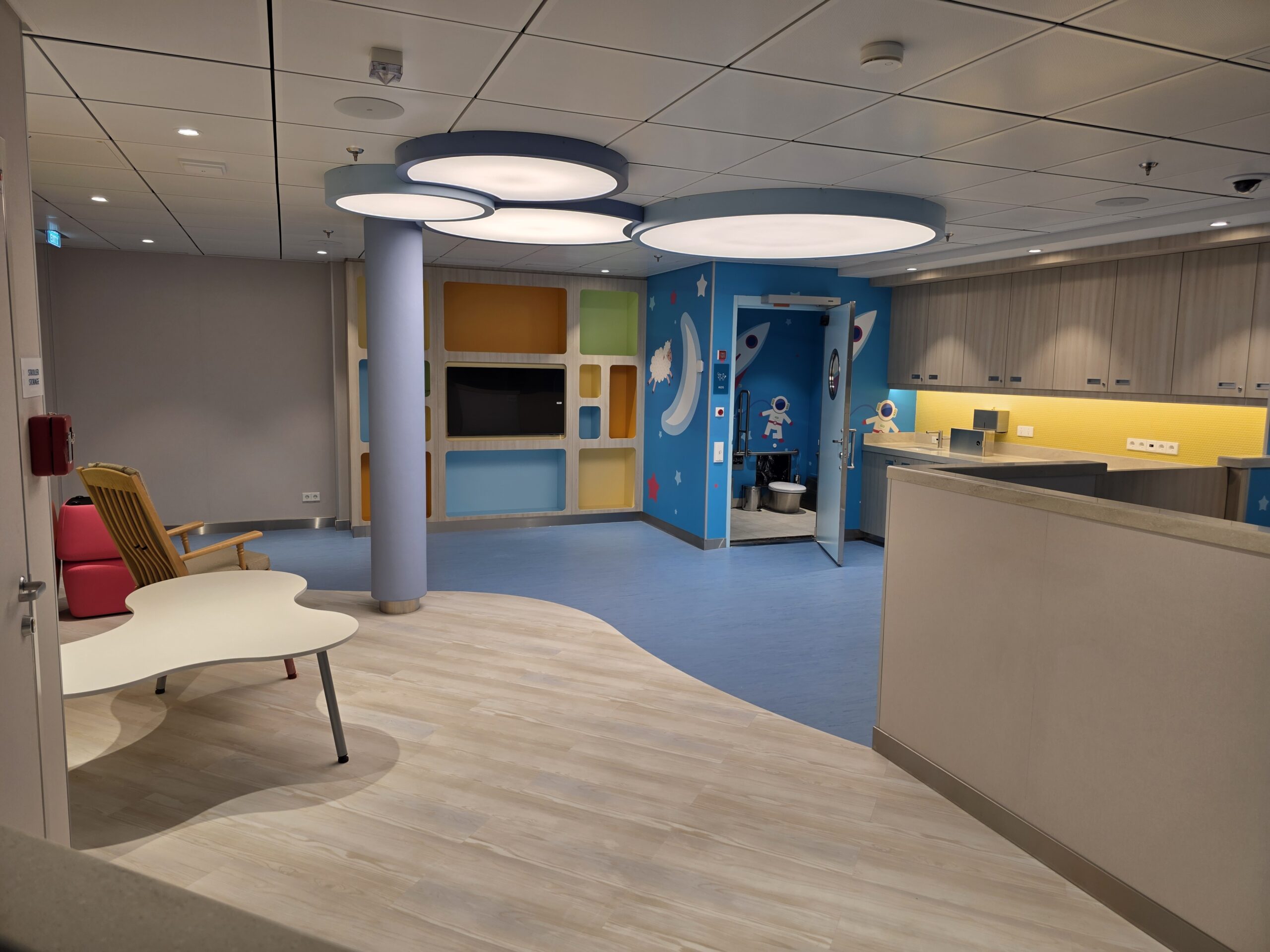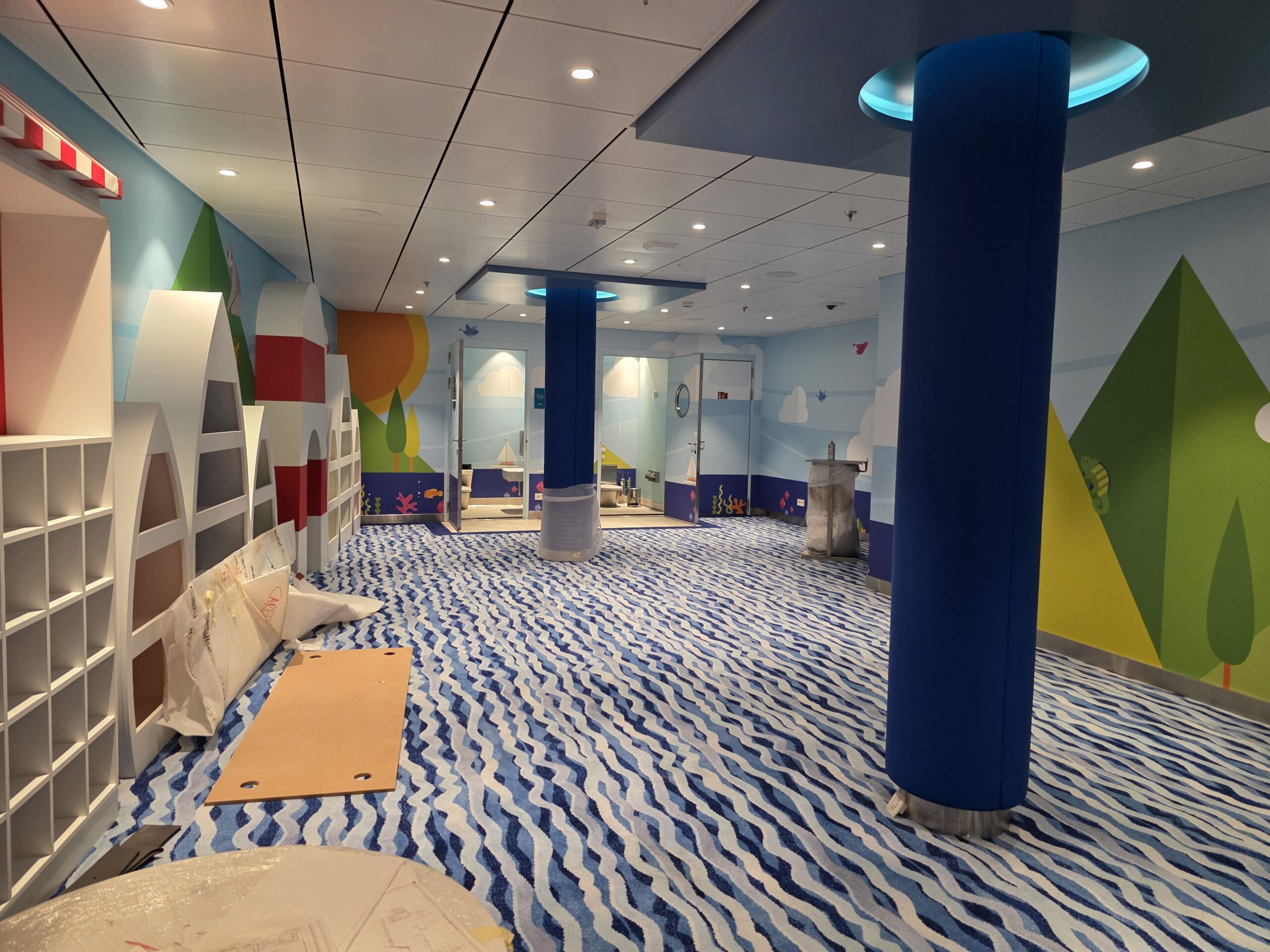 We also had the opportunity to build the Kids Area, a bright and spacious zone of more than 2000 square meters designed for children and teenagers. With the solid foundation from the previous ship, planning and layout development were already familiar, making the work even more efficient this time. The Kids Area includes multiple themed zones for different age groups, from activity and play rooms to creative corners and relaxed spaces for older kids and teens. Our aim was to create a safe, fun, and inspiring environment where young guests can enjoy themselves and make great memories during their time on board.